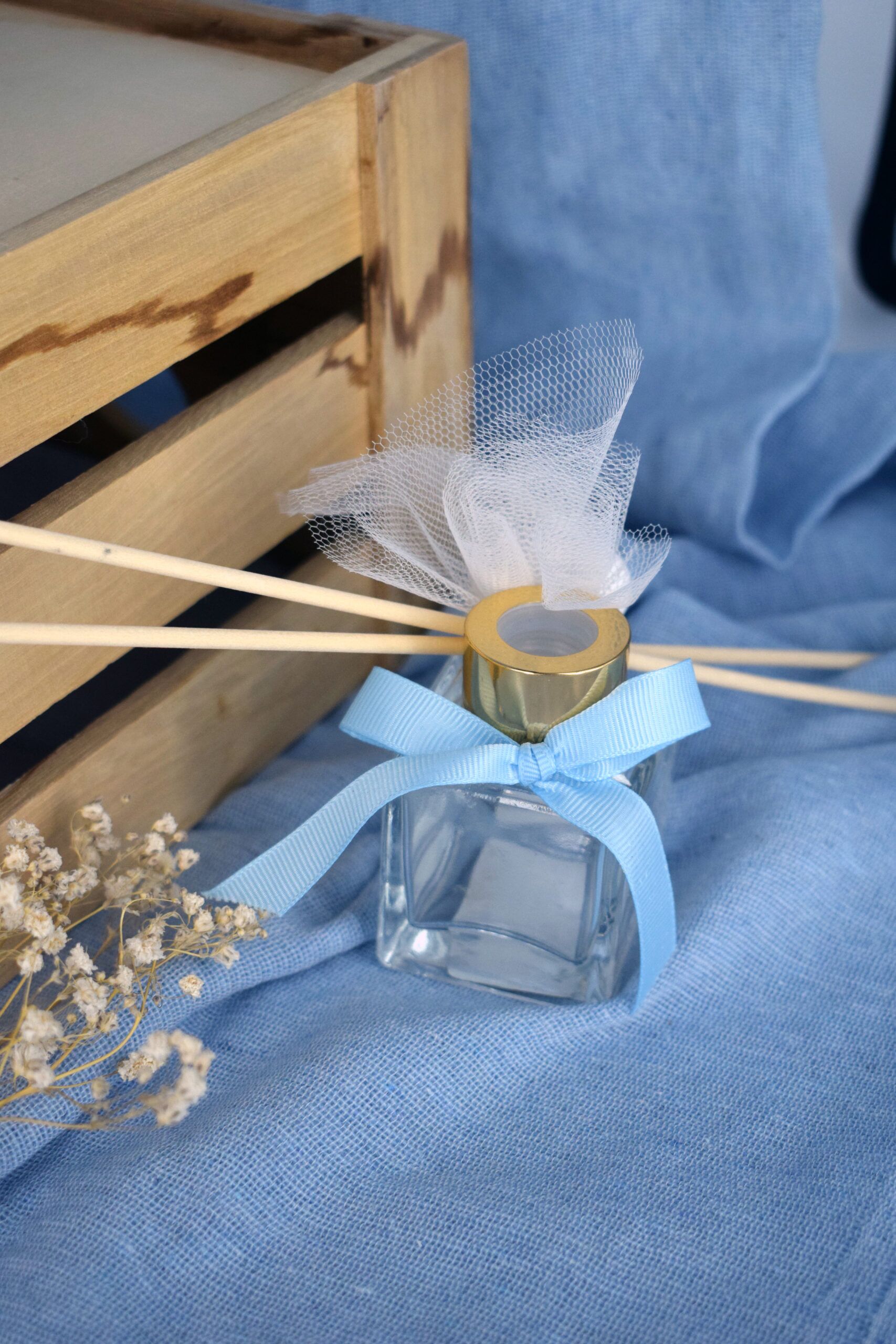 Ξεχωριστή επιλογή για μπομπονιέρα, αρωματικό με sticks, δέσιμο από κορδέλες, label ή αυτοκόλλητο της επιλογής σας και κουφέτα!