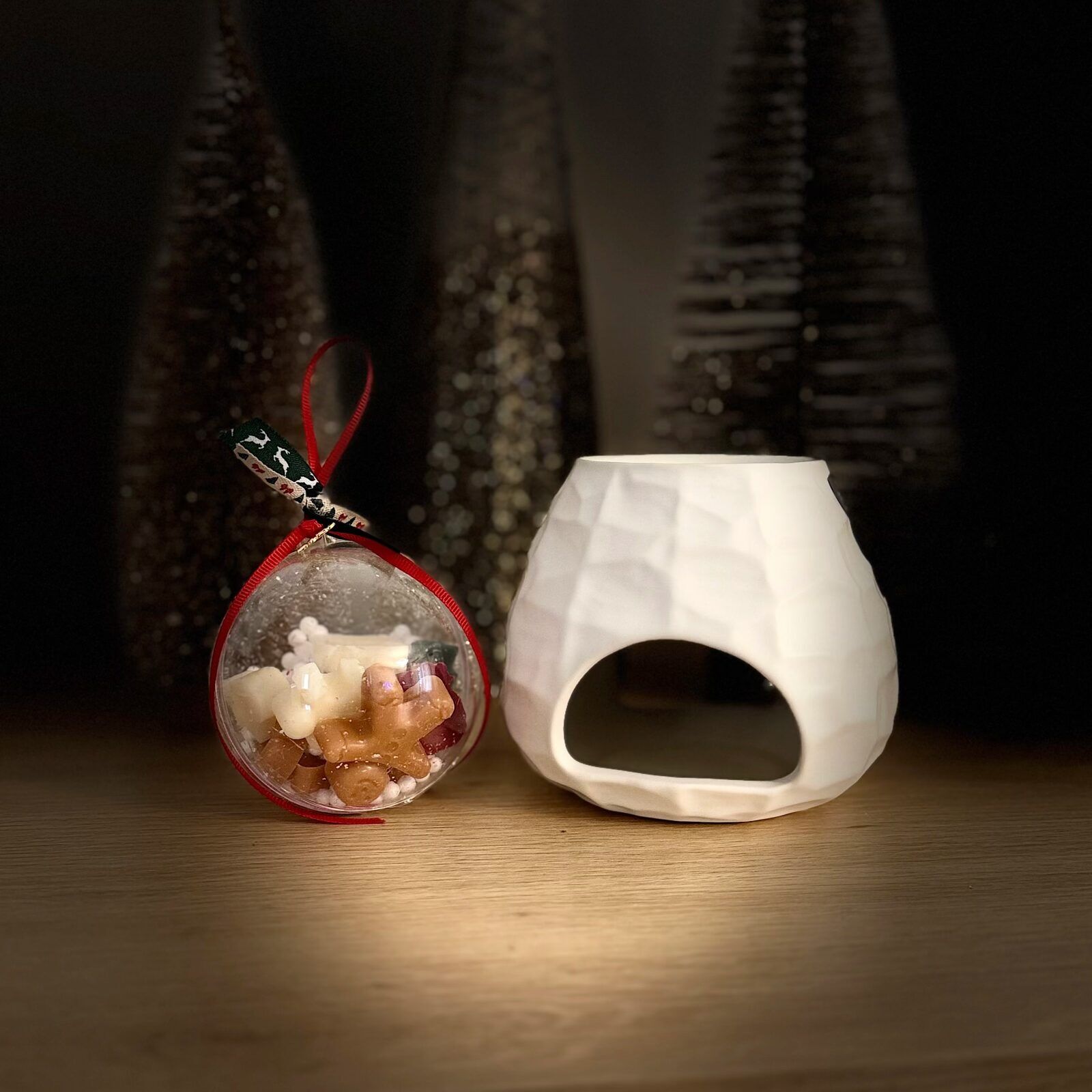 Αρωματιστής scentchips με σαγρέ υφή με wax melts σε Χριστουγεννιάτικη μπάλα