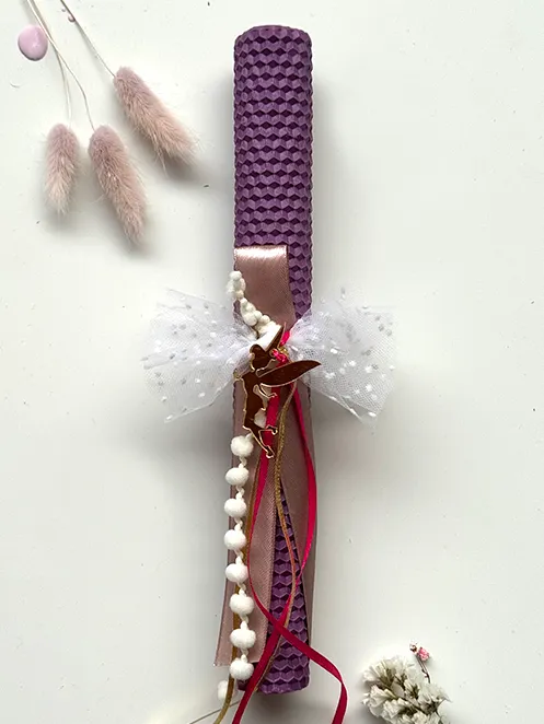 Χειροποίητη λαμπάδα κηρήθρας από φυσικό μελισσοκέρι με Tinkerbell.
