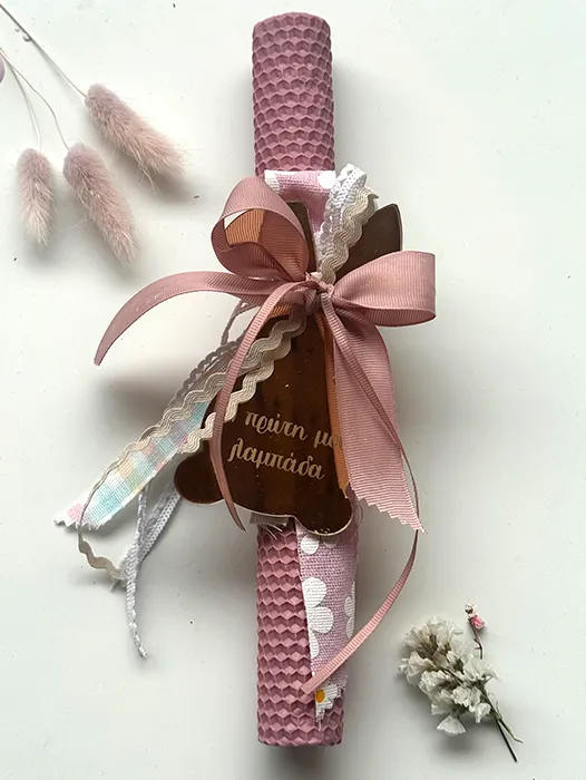 Χειροποίητη λαμπάδα κηρήθρας από μελισσοκέρι με σύμβολο plexiglass Η πρώτη μου λαμπάδα .