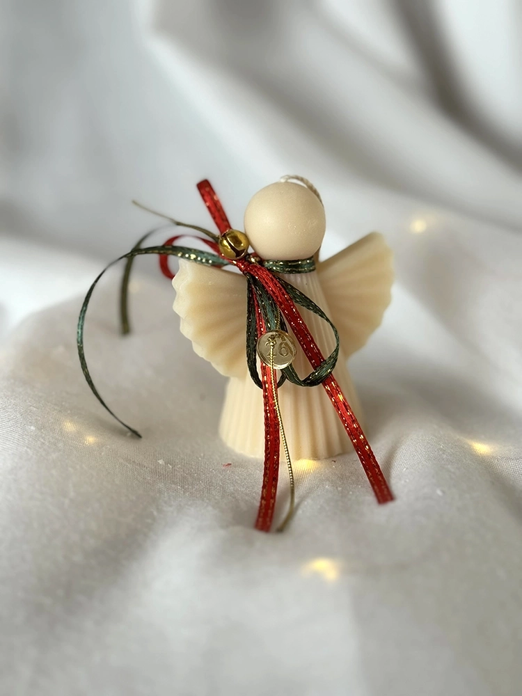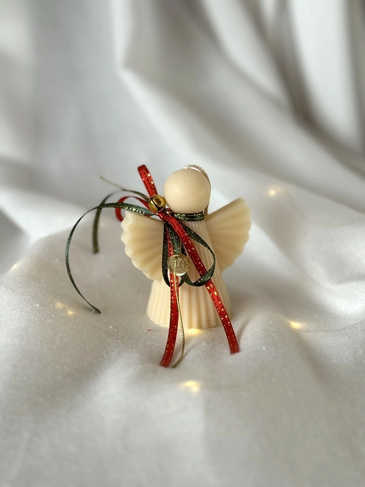 Το σετ περιλαμβάνει δύο χειροποίητα γούρια σε σχήμα αγγελάκι από 100% φυτικό κερί ελαιοκράμβης.