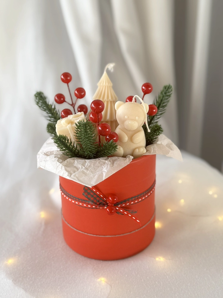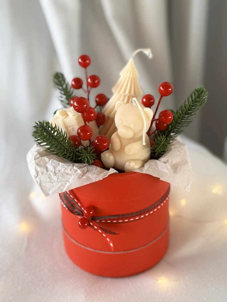Μία μοναδική Χριστουγεννιάτικη σύνθεση από φυτικό κερί ελαιοκράμβης.
